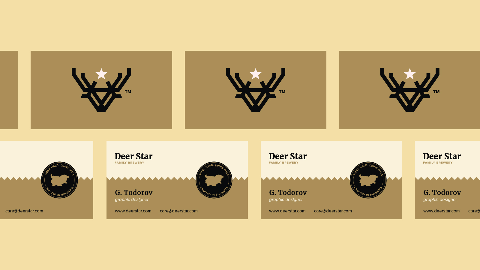 Deer Star is a small family-owned brewery based in Bulgaria, established in 2018. Their premium craft beers are brewed seasonally, using only fresh spring water and locally sourced ingredients. The cans are made from 100% recyclable materials. The logo is inspired by the name 'Deer Star,' and features a small stamp to emphasize that the beer is made in Bulgaria. Each beer has its own unique character, reflected in the distinct color designs. They currently offer four different varieties of Bulgarian beer: Classic, Classic Red, Retro Yellow, and Lager